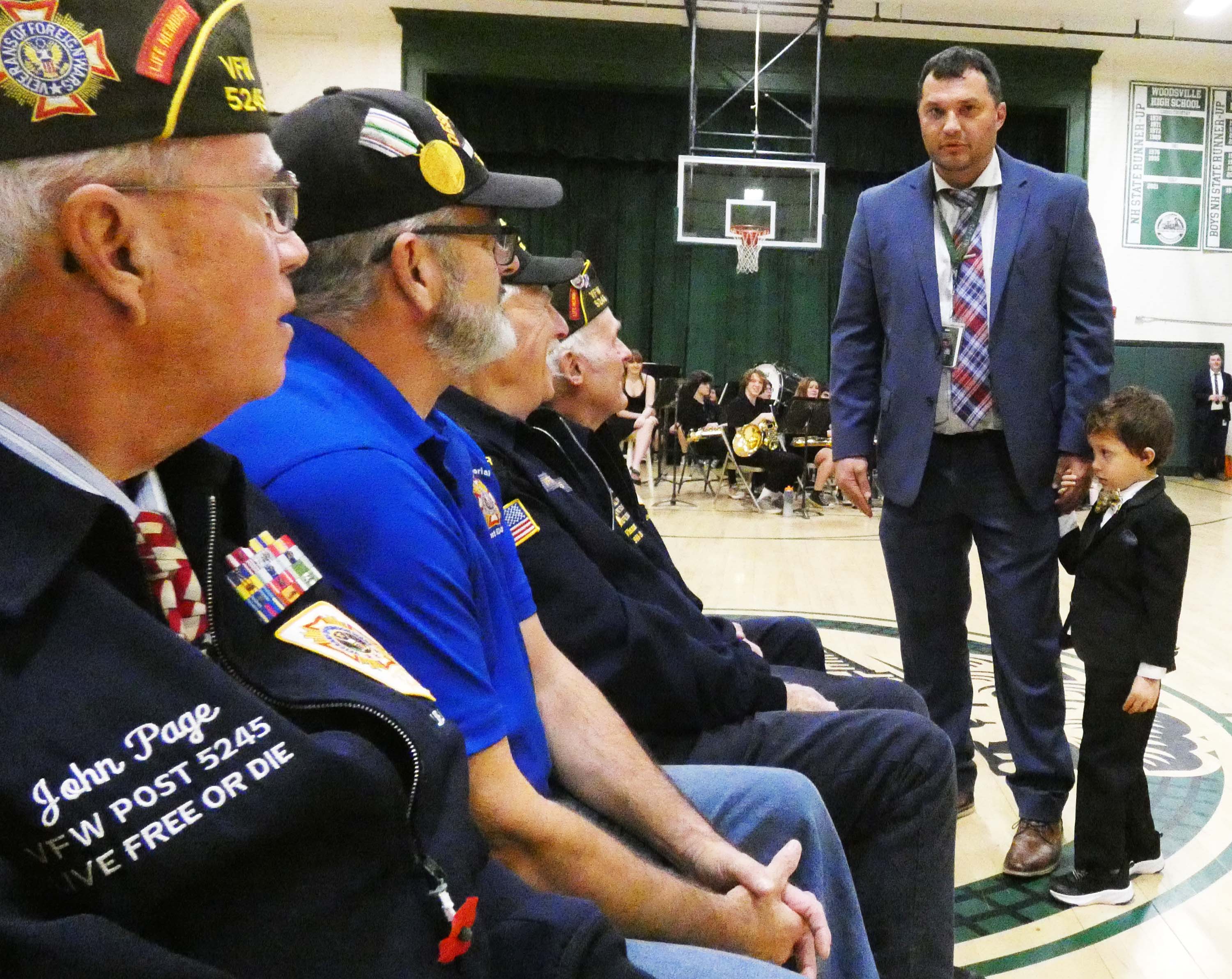 One of the highlights of the afternoon's program featured a pre-school child, accompanied by his dad, Woodsville High School Principal Hayden Coon, who had one of his young sons in hand during the program.