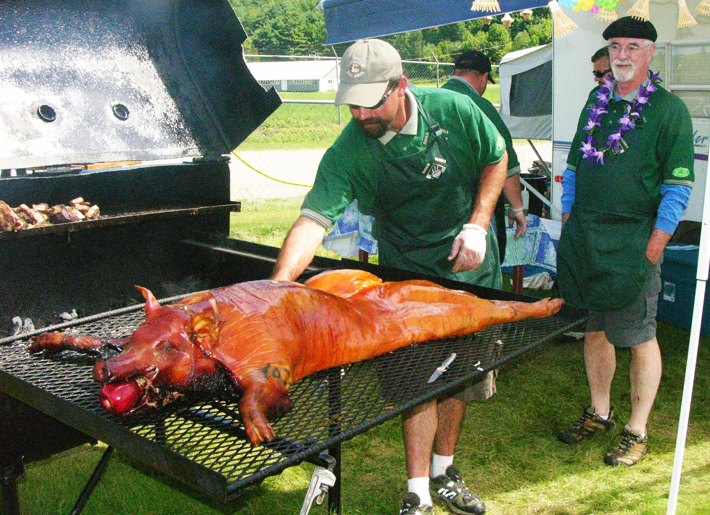 The program consisted of BBQ and music, with professional prize-winning cooking teams from the deep south (and locally, as well) being here at the Bradford Memorial Field or later, the North Haverhill Fair Grounds BBQing their pigs that were judged for goodness, technique, cleanliness and taste by a team of nationally certified and trained judges, many of them local. Oh, what fun we had!