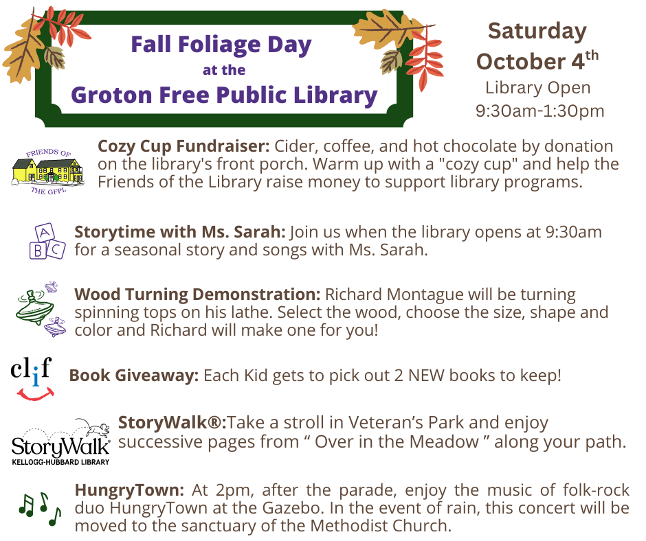 The Friends of the Library will be hosting a “Cozy Cup” Fundraiser, offering cider, coffee, and hot chocolate by donation on the library's front porch. Warm up with a "cozy cup" and help the Friends of the Library raise money to support library programs.