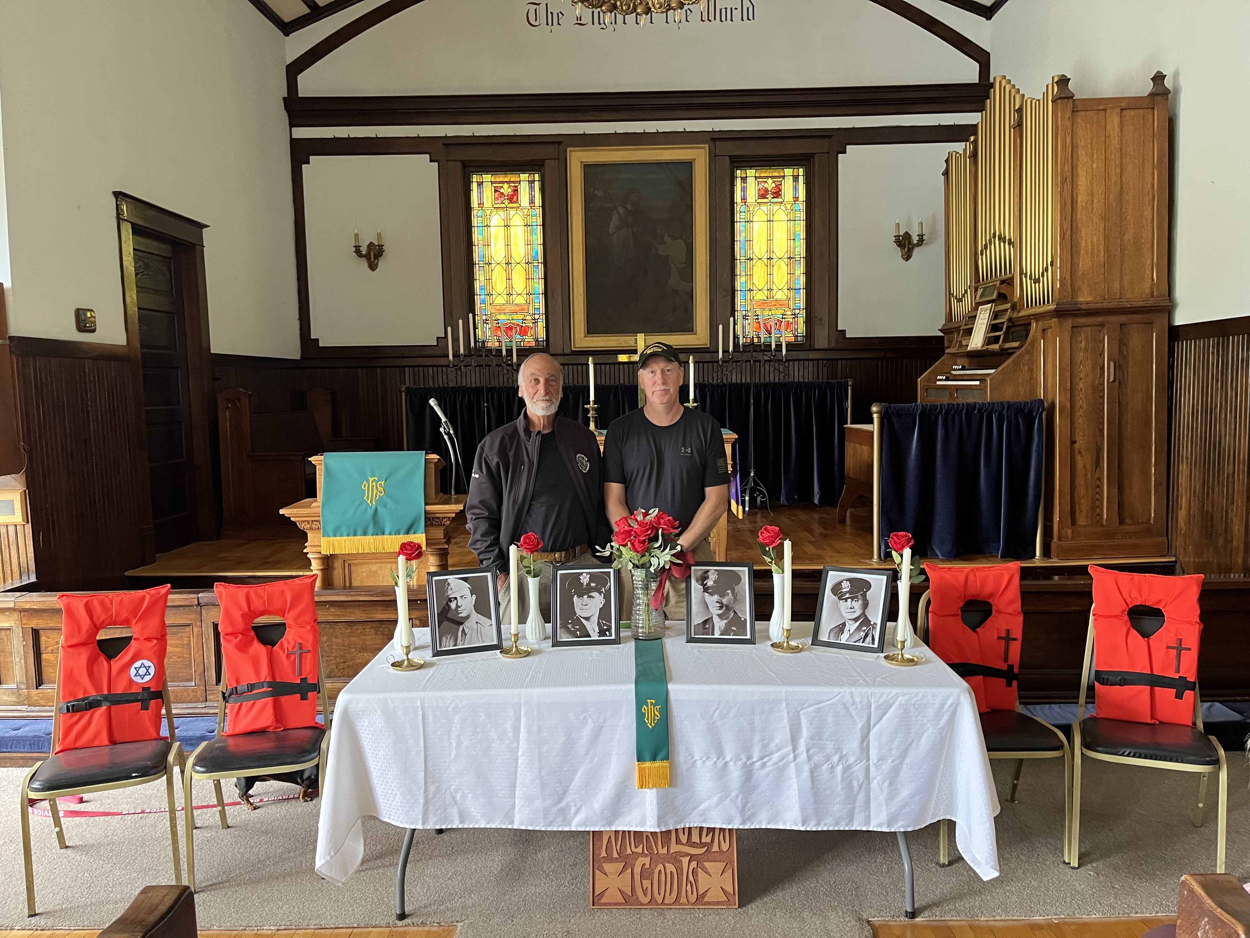 Whether you’re a history enthusiast, veteran, or simply seeking a peaceful place of reflection, the Rev. Fox Memorial offers a unique and moving experience. Just sitting in the pews looking at the photos of the four Chaplins and the life vests with the chaplins’ emblems is a moving experience.