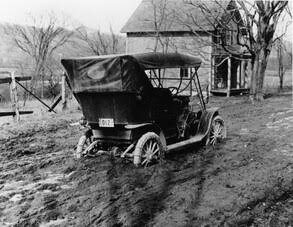 The term, "stuck in a rut," came from the horse and buggy days. The narrow wagon wheels made deep ruts from traveling the same path repeatedly, so when they turned their horses or oxen, the wagon wheels kept trying to follow the deep grooves. The same thing happened in winter where the sleighs and sleds made frozen ruts. When my grandfather, Kenneth Batten, was in his early 20's in the early 1920's, he had a Model T Ford that he had had fitted with tracks and skis to run his Star Mail Route in the winter. He made two trips daily between Waits River village and Bradford VT. In those days, people who had cars would park them for the winter and travel by horse and sleigh. At times, my grandfather would meet teams of horses hauling freight on a big sled, or sledge. The teams could pull the sleds out of the ruts easier than an automobile with skis could steer out. With a bit of difficulty, the teamster had his horses get the sled off the track to let my grandfather pass. My grandfather told how sometimes they would say something like, "young man, you should keep that danged contraption off the road in the winter."