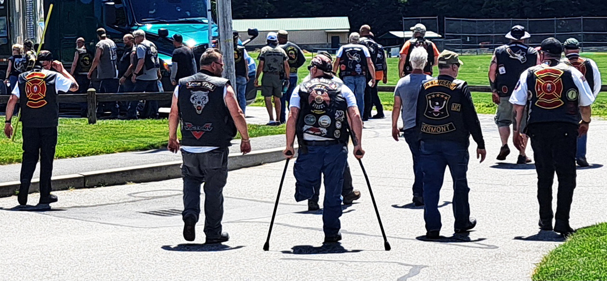 For the next hour and one-half, the lead cruisers, 200 motorcycles, associated civilians, and the Claremont Fire Department escorted the two-mile long caravan through small towns along the way, ending our trip at Monadnock Park, where the wall was to be assembled and available for public viewing until Sunday, June 29, 2025.