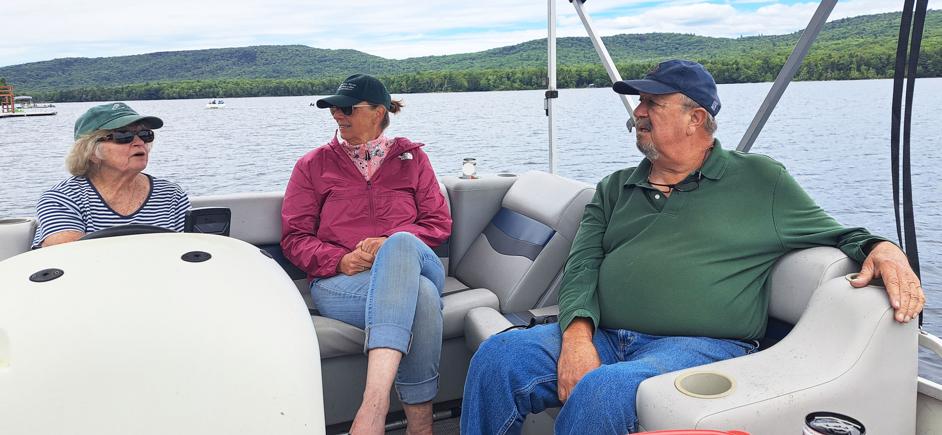 Captained by Piermont’s Town Moderator Joyce Tompkins, her noiseless four-stroke motor gently pushed her pontoon vessel along the glass-smooth waters of Lake Tarleton during a recent afternoon. The temperature had moderated; it was gorgeous just to sit back and float around the perimeter of the lake at a slow idle.