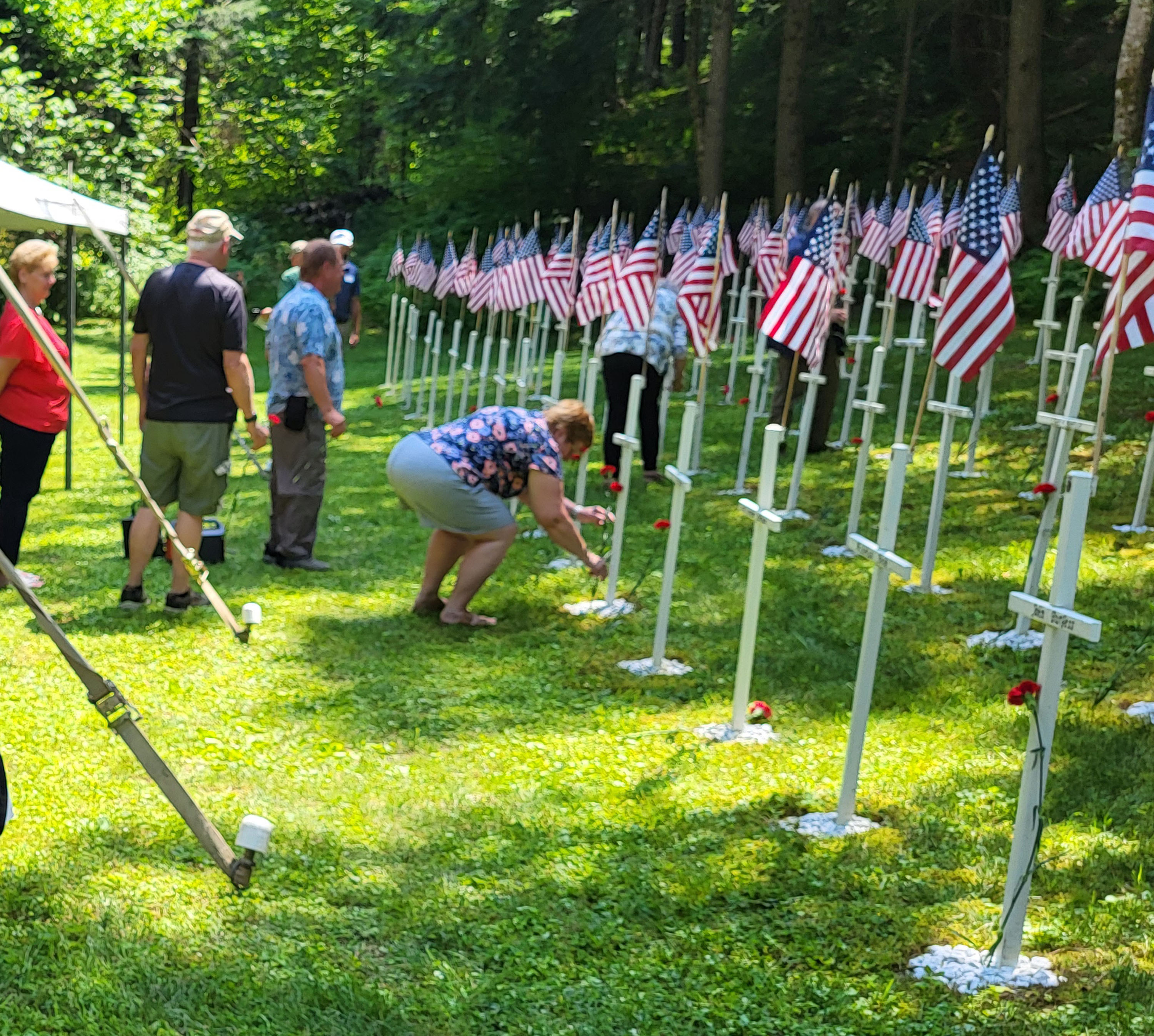 Joanne and Lloyd Donnellan of Landaff offered a section of their private property to be the new memorial site, and the Lancaster area was taken down, all of the crosses signs and flagpoles were moved to the new memorial site in Landaff. The Donnellan land was cleared, and the crosses and flagpoles were installed.