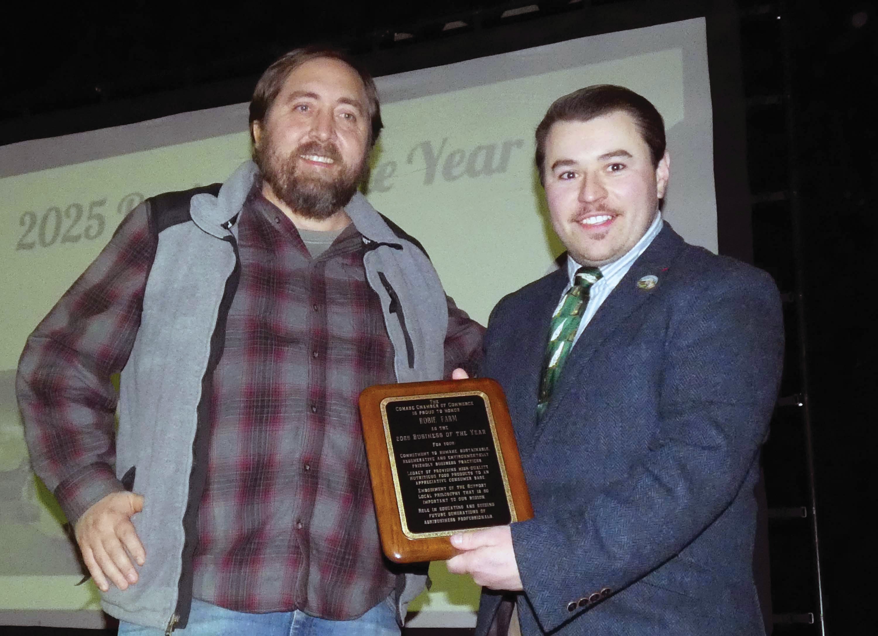 Today, there is a full line of those products and more at their farm store and in their online shop. Accepting a handsome plaque from Chamber officer Joe Mitchell was Mark Robie, one of the sons involved with the success of Robie Farm’s endeavors.
