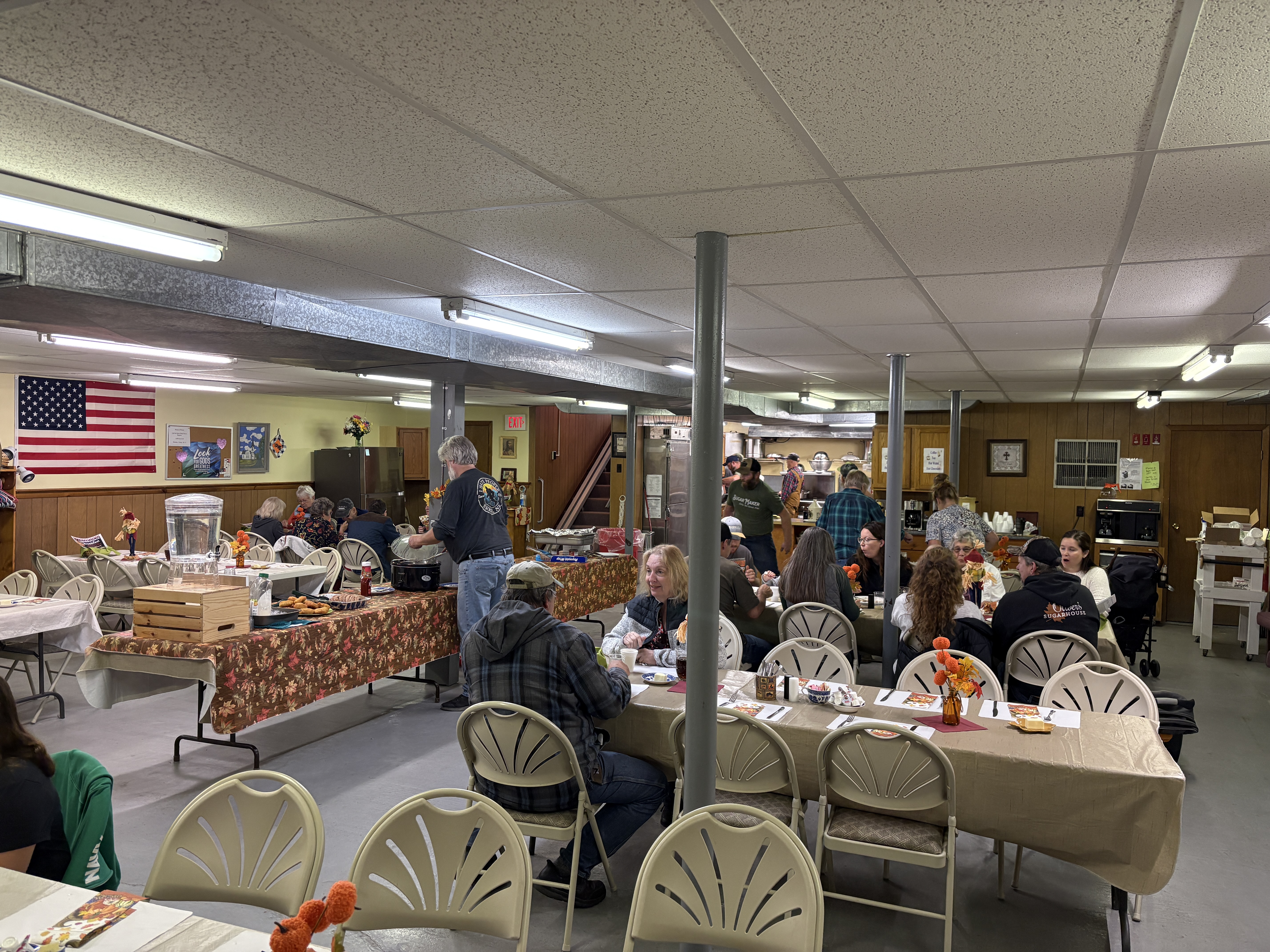 Three seatings — 4:30, 5:30, and 6:30 — along with take-out at 5, 6, and 7 — meant a steady stream of hungry festival-goers filed through the doors. The smell of chicken, biscuits, and gravy filled the building, wrapping everyone in something both familiar and comforting.