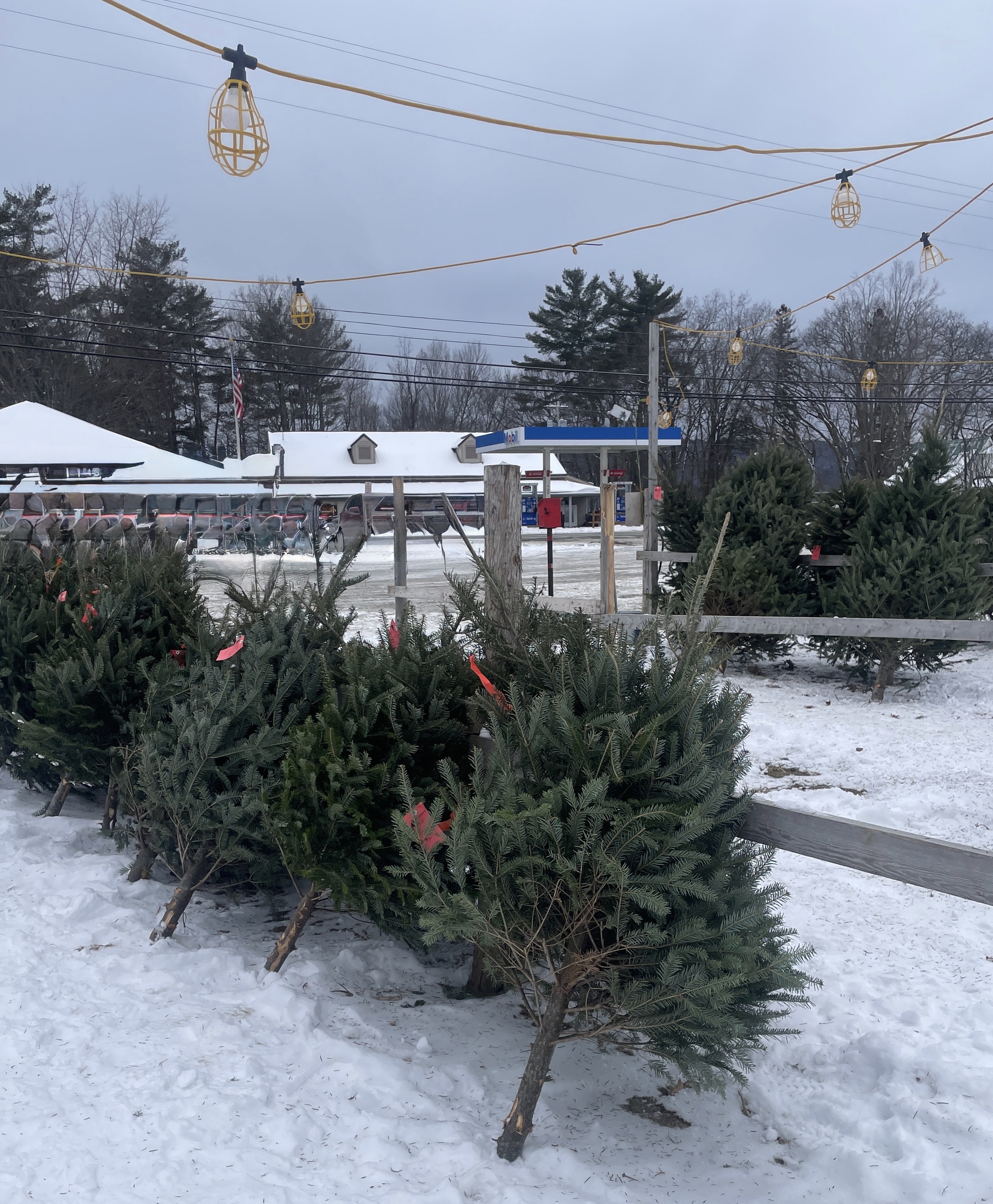 Managing the Christmas tree stand, which was relocated in 2023 to the parking area at Augie’s Rest Stop is more labor intensive than one might think. “It’s a lot of work,” says Amy, who, together with her husband, Todd Crocker, took over Peanut’s trucking company in June of 2022 and has continued the Lackie family’s time-honored traditions. “You have to set up the racks, hang the lights, bring the trees into town, unload them, set them up on the racks, cut the strings, and price them.”