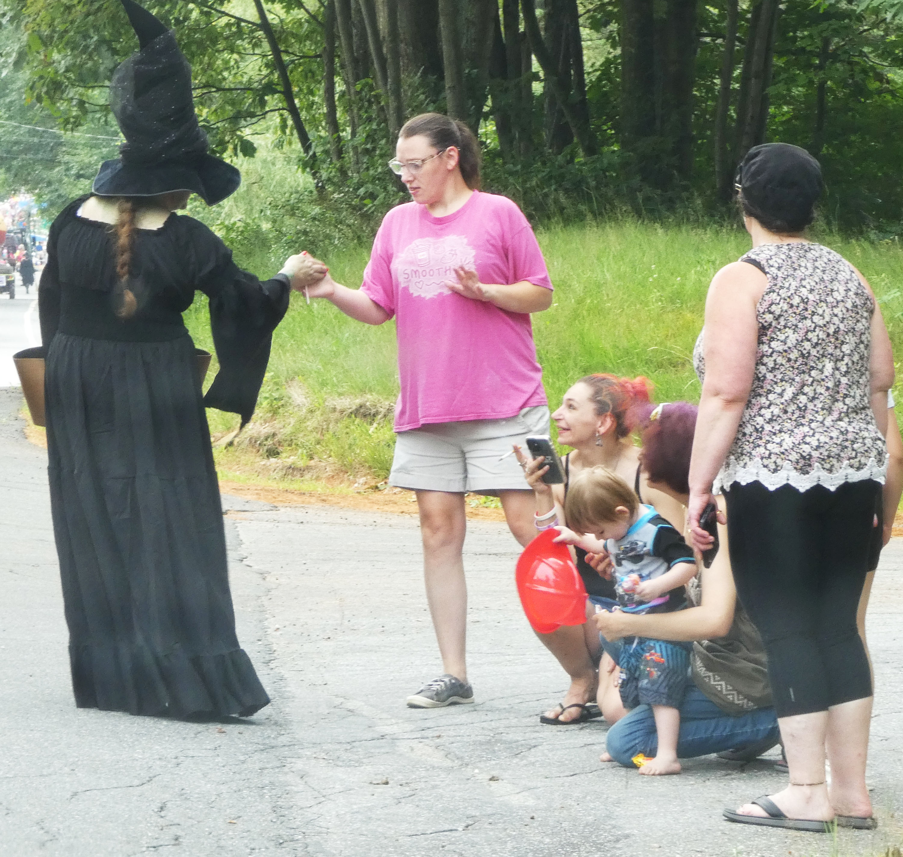 With the theme for the Warren Old Home Day Parade being The Wizard of Oz, there were many characters in the parade that were featured in the movie, such as The Wicked Witch of The West, seen here offering children candy along the parade route.