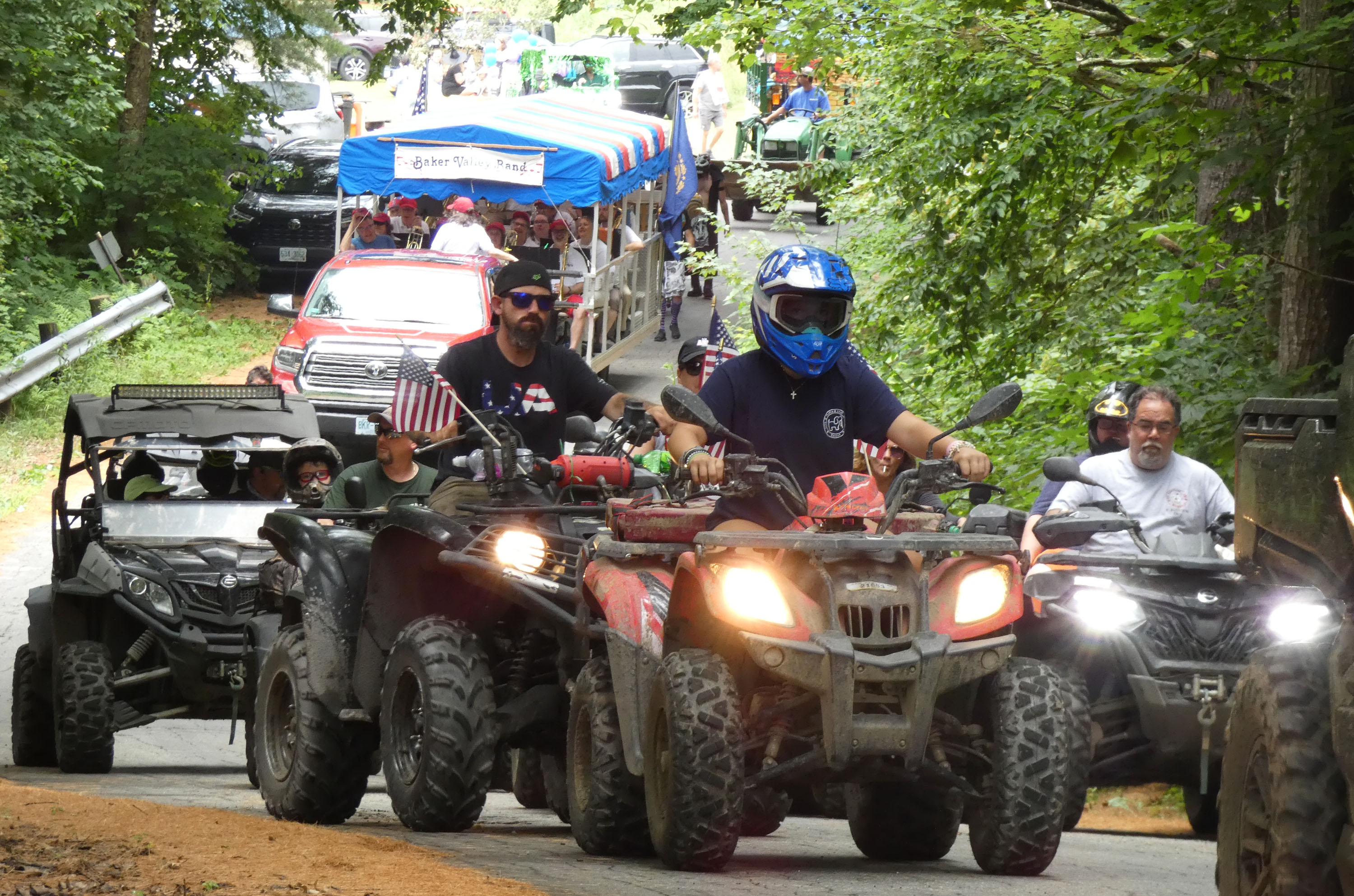 The Warren Old Home Day Parade is known for the unusually high number of ATV’s and other types of four wheelers that appear in the popular parade to the crowd’s delight. They are seen here as they accompany the Baker River Band along the parade route. The